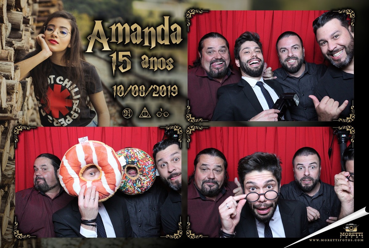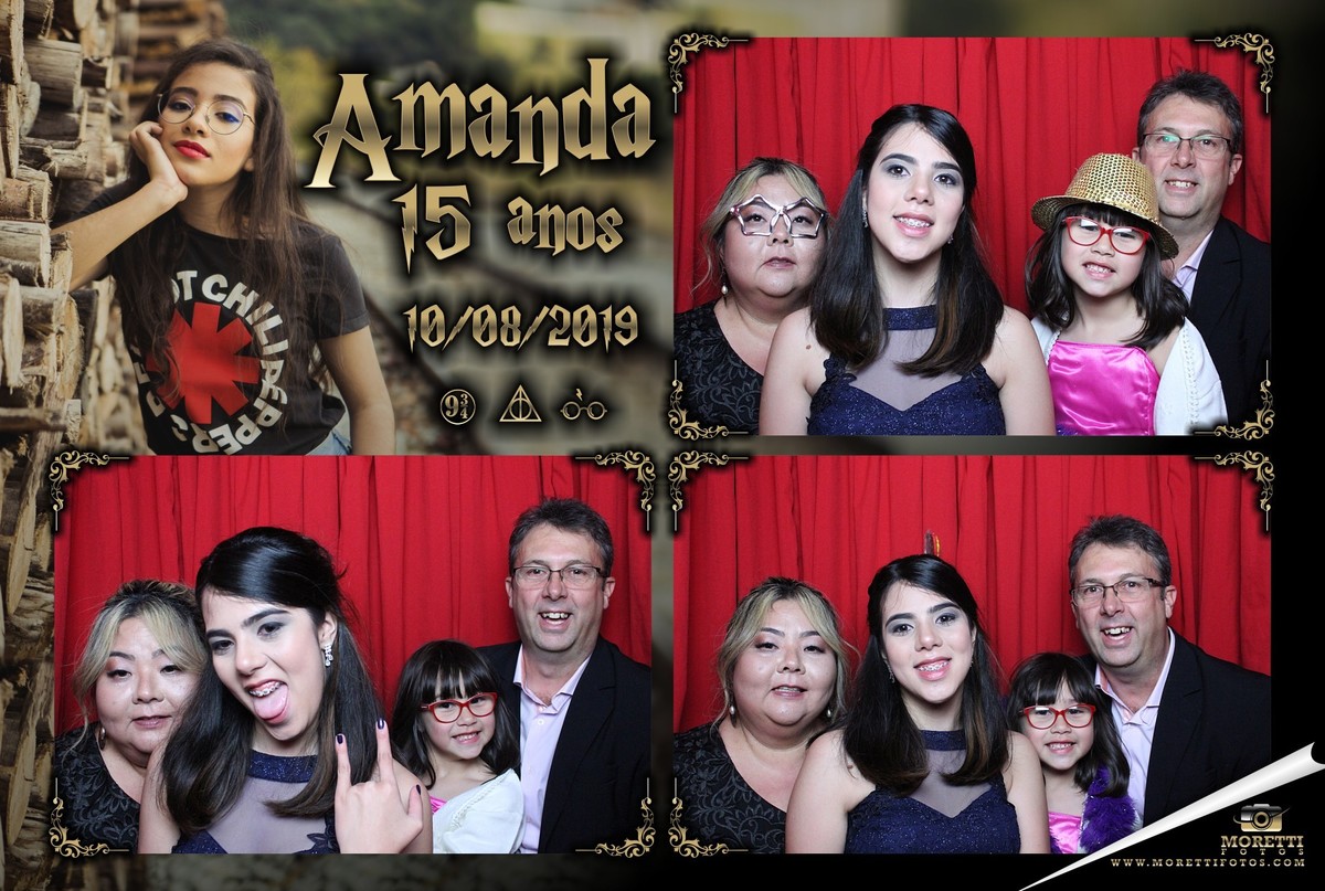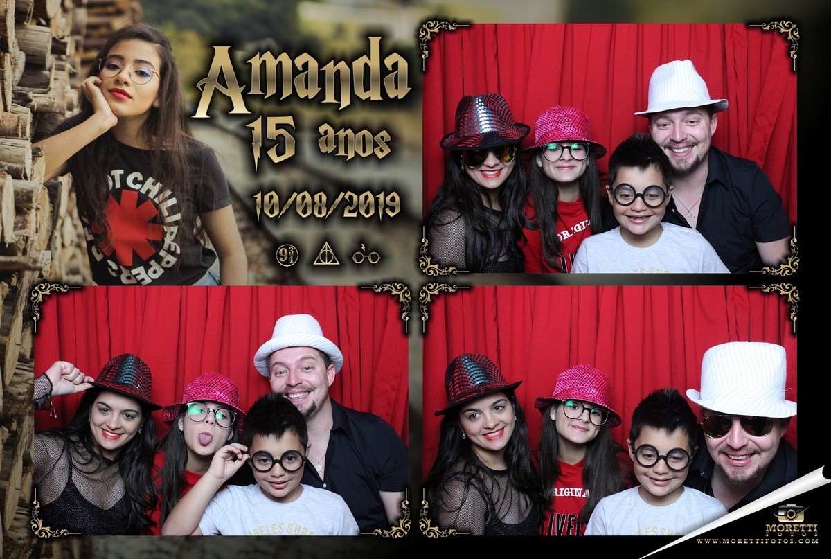 No dia 10 de outubro de 2019, no Espaço Linden Fest (Hogwarts), aconteceu o encontro Bruxo para comemorar o 15º aniversário da Amanda... realmente o local estava exalando magia e como você pode ver Ela estava lindíssima, foi uma festa com tudo que tinha direito... tiveram três trocas de vestidos, os "alunos convidados" jantaram à luz de velas do salão comunal, os pais Regina e Benedito estava vestidos com muita elegância para receber os convidados... decoração perfeita, Buffet e Dj por conta do Espaço Linden Fest, Fotografia por conta da equipe super competente Photolima Fotografia o Video Ficou por conta da experiencia do Willian Pacheco e a Moretti Fotos estava presente com a cabine de fotos para divertir ainda mais os convidados com a Magia de entregar fotos na hora...