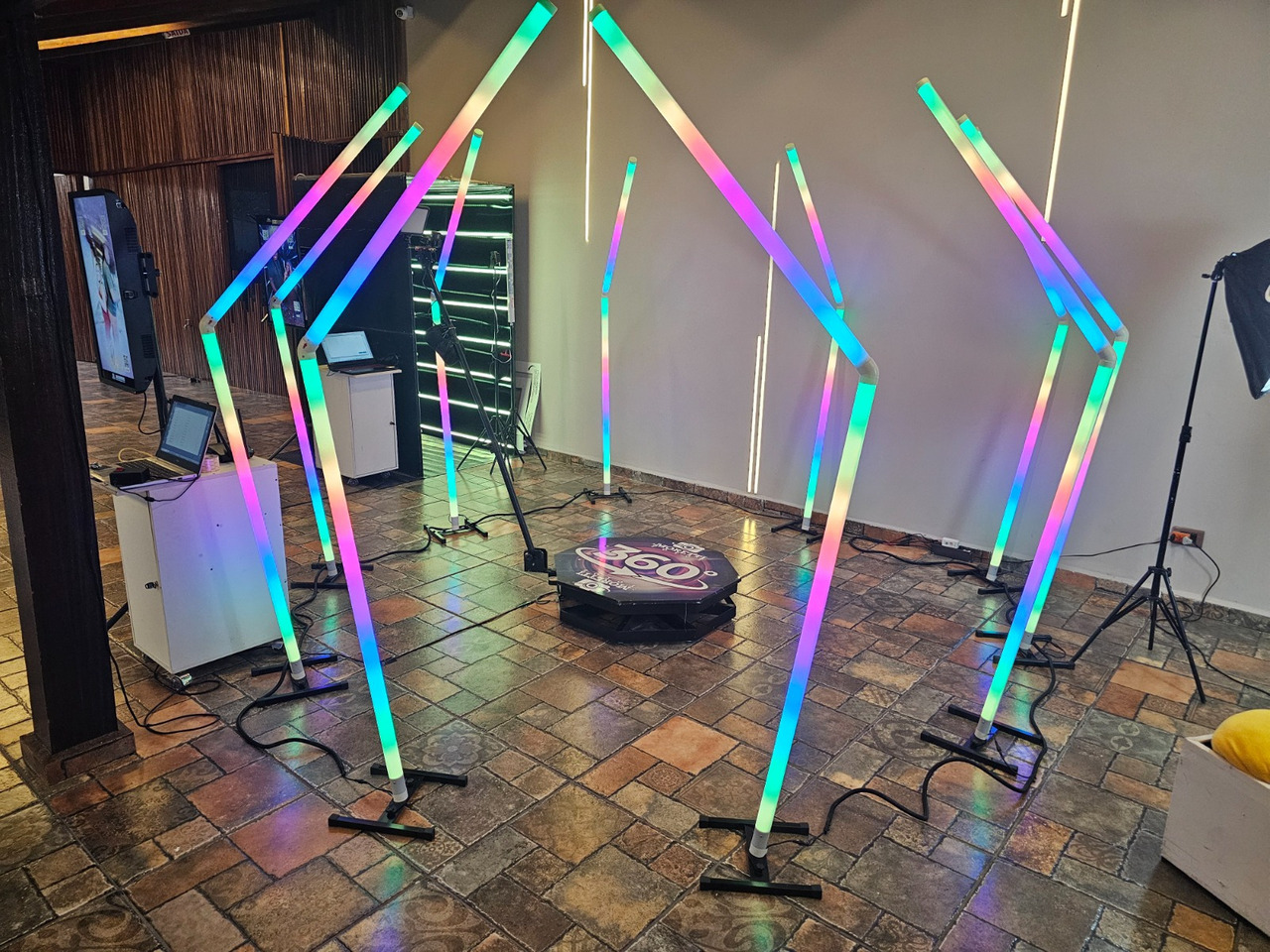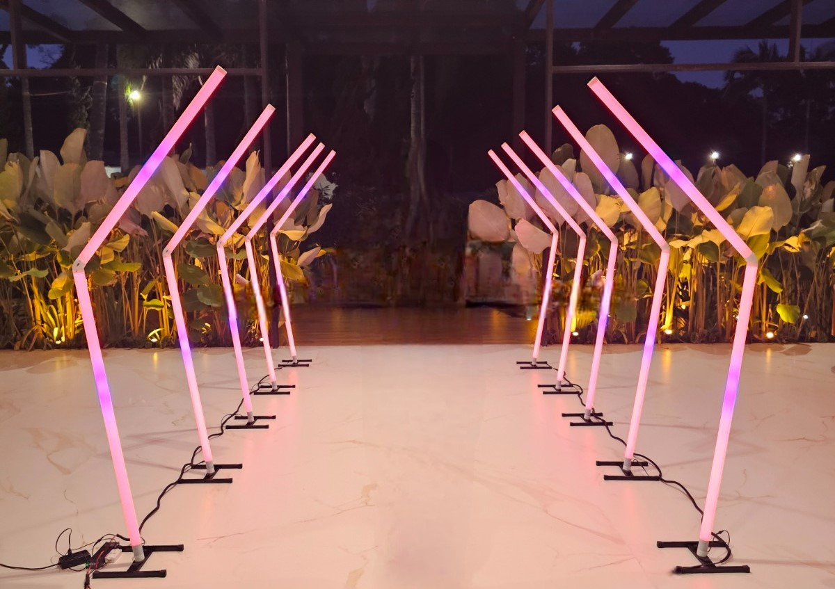 - Outra opção é: ela pode ser montada em diversos locais do evento, o que a transforma num caminho de luzes e cores. Podemos adaptar para que seja transformada num caminho de entrada do evento, para complemento de um ponto instagramável ou para aquilo que sua imaginação criar. A adaptação a diversos tipo de ambientes, tornando-os mais vivos, divertidos e atraentes.